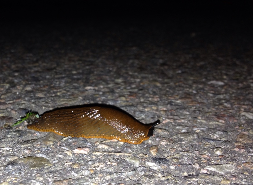 En liten slemmig snigel. Den största skillnaden mellan en snigel och en BMW är att snigeln har slemmet på utsidan..